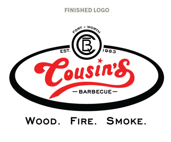 Cousin’s Barbecue wanted to roll some new merch out and get away from their old logo. They wanted it to be about authentic BBQ and how they are always smoking new BBQ. The branding iron piece is something they really wanted to add. The new designs were focused on heritage with a classic aesthetic. The original script logo was used to keep their identity intact, but the brand was incorporated for a retro feel. An oval was added to create a container for branding.